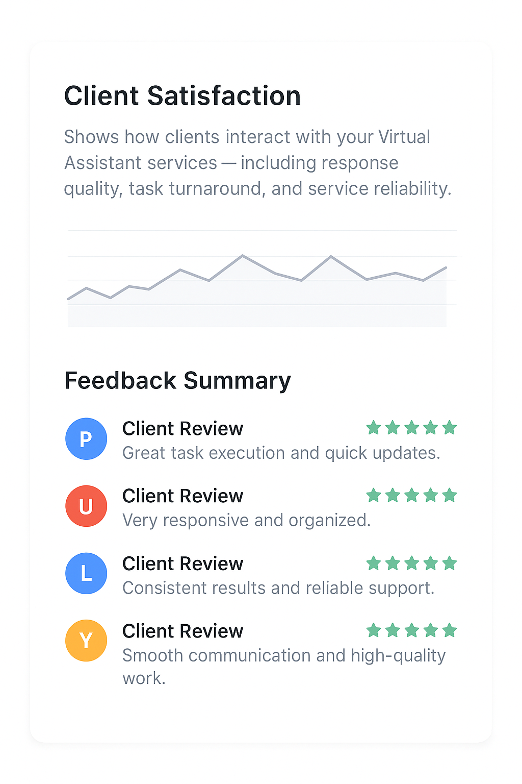 Outstanding support! Our assigned Virtual Assistant consistently delivers tasks on time and with high accuracy.